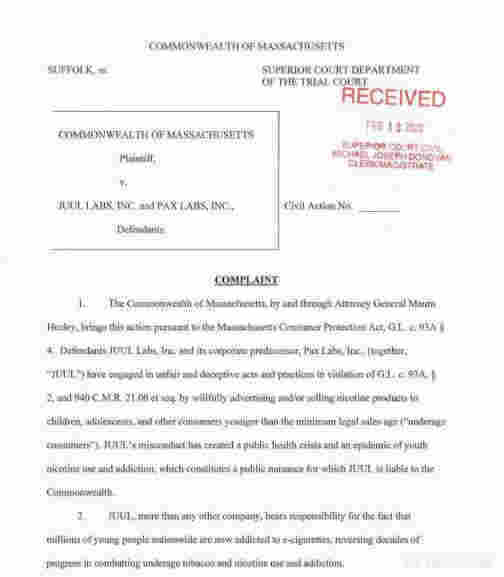 據稱,Juul還通過電子郵件銷售給未成年消費者,并向馬薩諸塞州的未成年高中生出售產品?!?Juul允許使用學校電子郵件地址為馬薩諸塞州的消費者建立1200多個帳戶,包括與Beverly、 Malden及Braintree 的高中相關的電子郵件地址,并將其產品運送給帶有明顯虛構名稱的收件人,例如'PodGod'?!?。