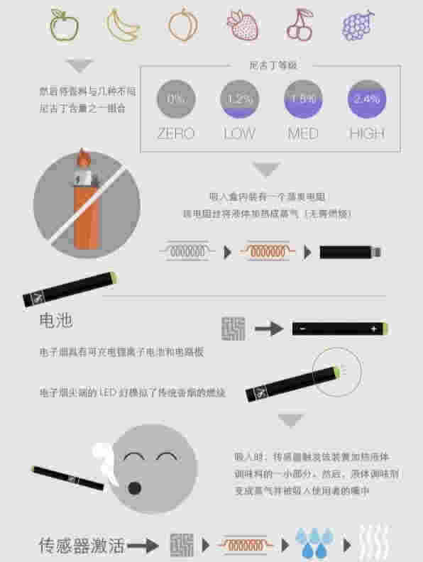 “電子煙之父”韓力在發明電子煙時的初衷,是為了給自己自己找一種香煙的替代品。他將尼古丁用丙二醇稀釋,再加入其他成分、香精等形成煙液,進一步使用超聲波裝置霧化后進行吸入的方式。