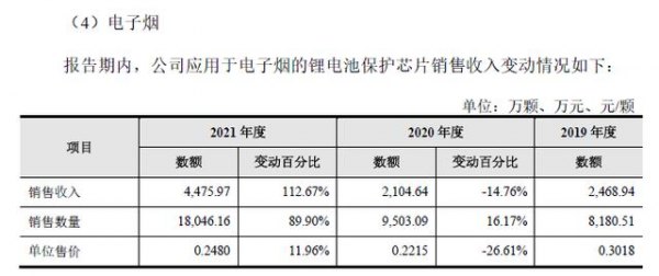 第三大應用領域則是電子煙。隨著國內電子煙新規出臺與落地,曾經野蠻生長的電子煙行業正邁入整合期,新規對國內電子煙市場銷售帶來一定的沖擊。同時,國外對于電子煙行業的監管也日趨嚴格。去年賽芯電子應用于電子煙產品的鋰電池保護芯片實現營收4475.97萬元,占比為18.27%,這一比例仍然不小,面對存在諸多不確定性的電子煙行業,公司是否考量過相關風險和對策?
