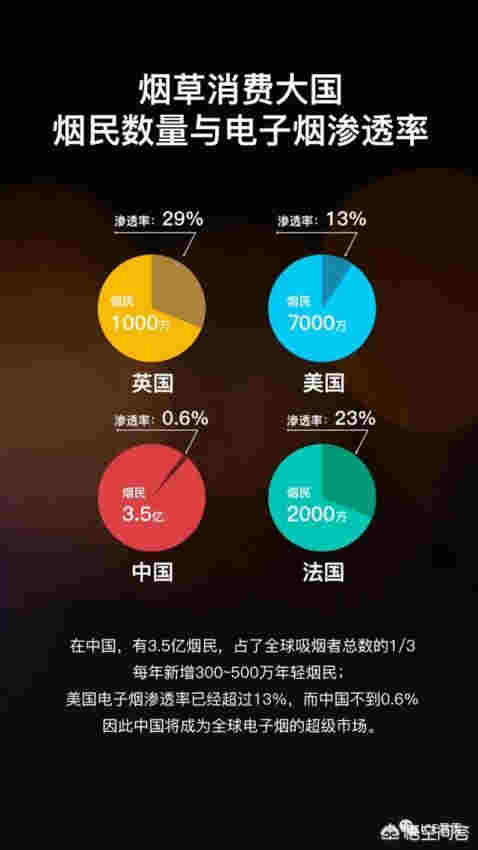 戒煙與替煙需求同樣出現在今天中國。今天的國人越來越重視健康,但是中國擁有龐大的煙民數量也是不爭的事實。據世界衛生組織數據顯示,目前全球吸煙人數超10億人,中國煙民數量高達3.5億。2017年,全球電子煙用戶達到3500萬人,而中國的電子煙用戶卻只有50萬人。電子煙作為目前最好的“替煙”解決方案,是能夠解決煙民的健康與煙癮的矛盾的。不過,對于電子煙企業而言,要想真正占據中國電子煙市場,必須要從保證產品質量做起,這是企業發展的不變的鐵律。