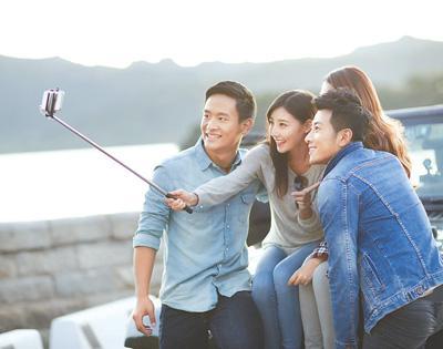 年輕人用手機自拍。 人民視覺