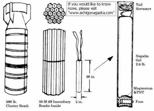 多半是集束式的凝固汽油彈,型號主要為M69集束燃燒彈,以及一定程度的M47和M50燃燒彈。