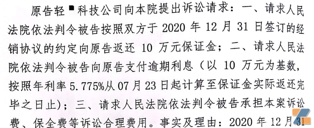在今年2月的推文《為退10萬輾轉三地法院?頭部品牌保證金難返還》中,我們和大家分享了一份悅K與經銷商之間的民事判決書。其中涉及因考核不通過而合作中止,是否能退回保證金的問題。 其中,當時的判決書中顯示,輕L科技訴求為三點: