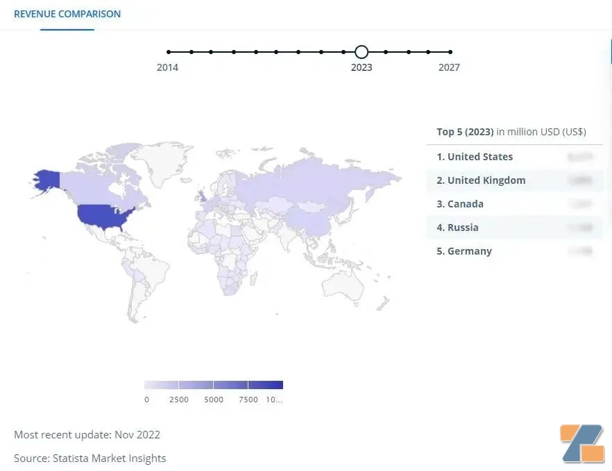 (全球電子霧化收入對比分布 圖源:statista)