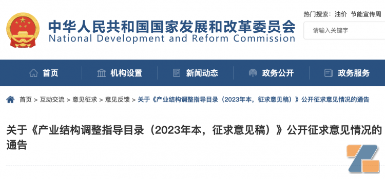 【2】國家發展改革委關于《產業結構調整指導目錄(2023年本,征求意見稿)》公開征求意見的公告