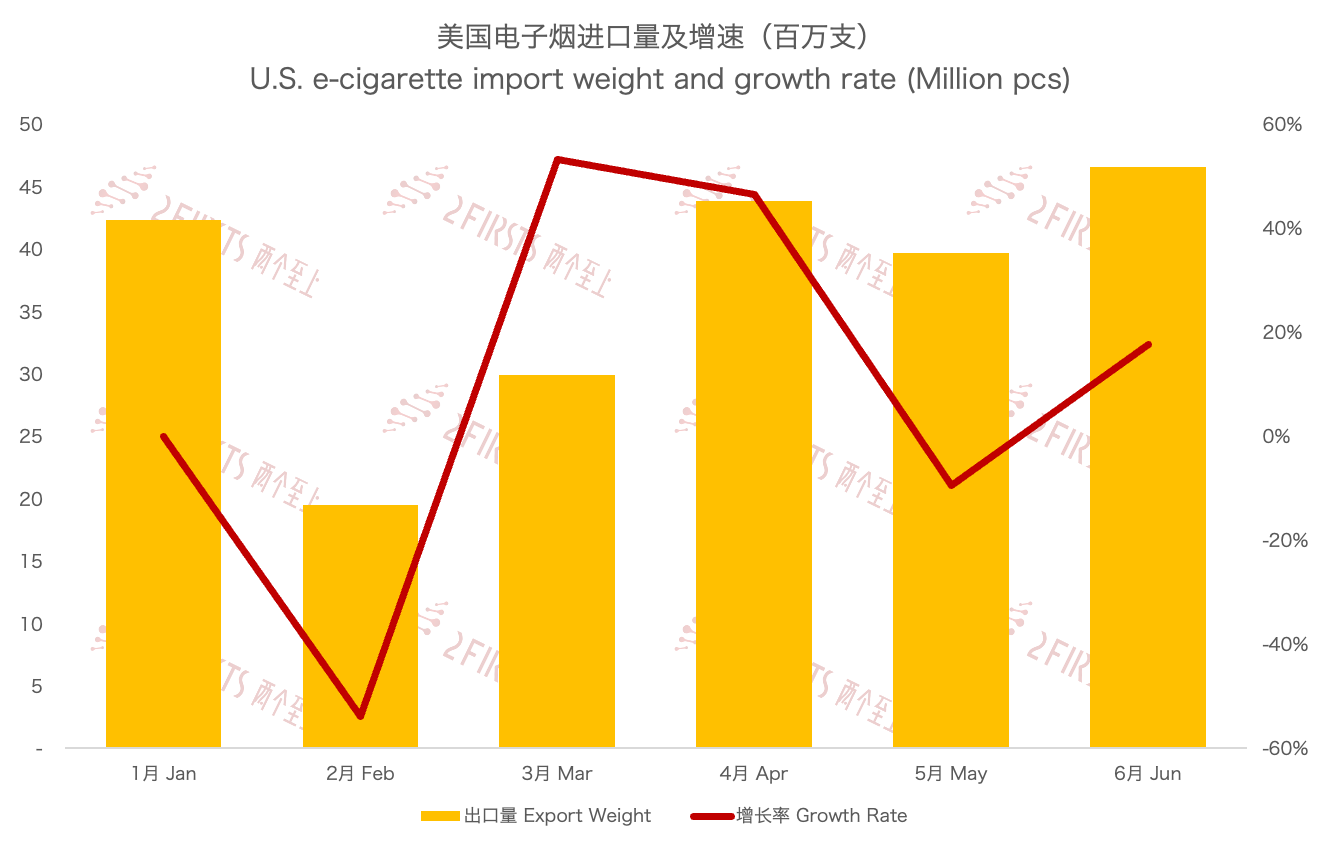 2023年6月美國電子煙進口數據分享。