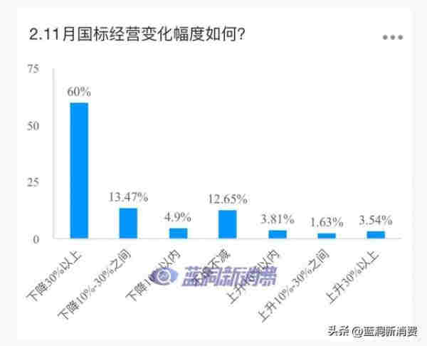 調查顯示,60%的店主經營業績環比下降30%以上,環比下降的加起來達到78%。
