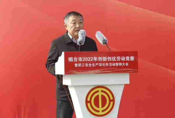 ▲煙臺市總工會黨組書記、常務副主席黃亞林作動員講話